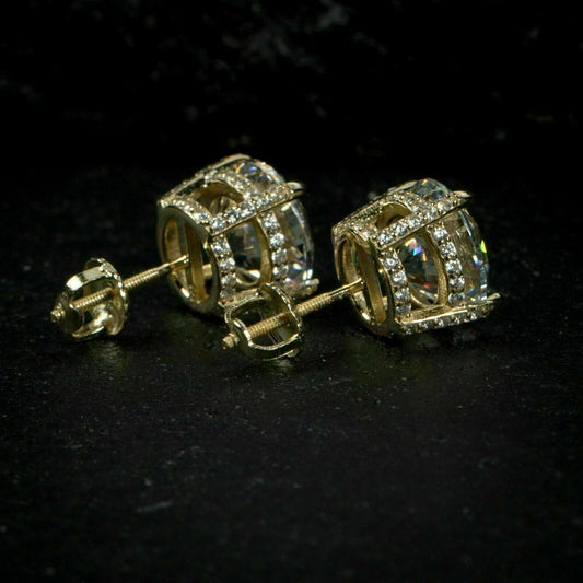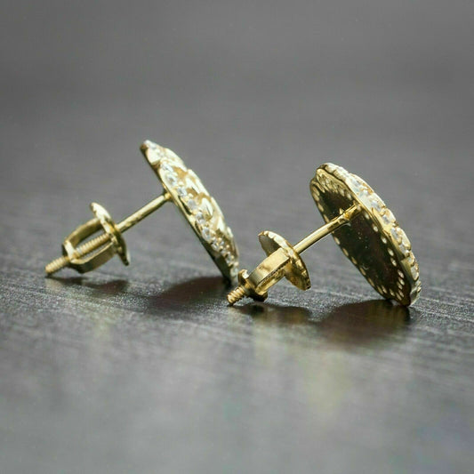 New Men's Nugget Stud Earrings 14K Yellow Gold Over 1Ct Round Cut VVS1/D Diamond
